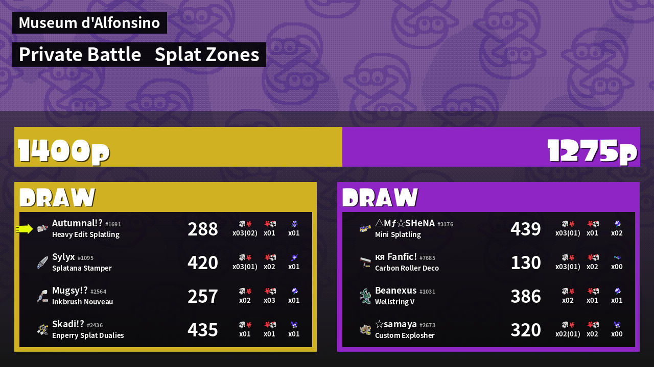 Kills / Deaths | 1 + 2 / 1 = Kill Ratio: 1.00 | ||
