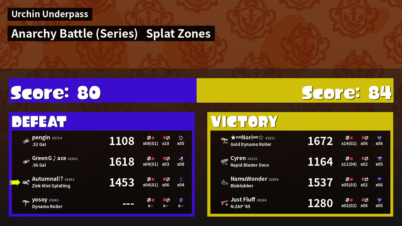 | Mode | Splat Zones - Anarchy Battle (Series) | ||