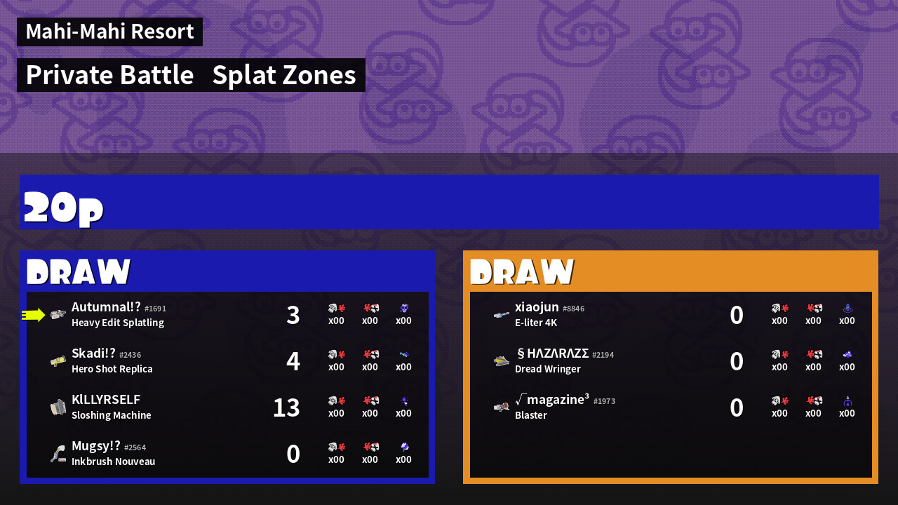 Kills / Deaths | 0 + 0 / 0 = Kill Ratio: 1.00 | ||