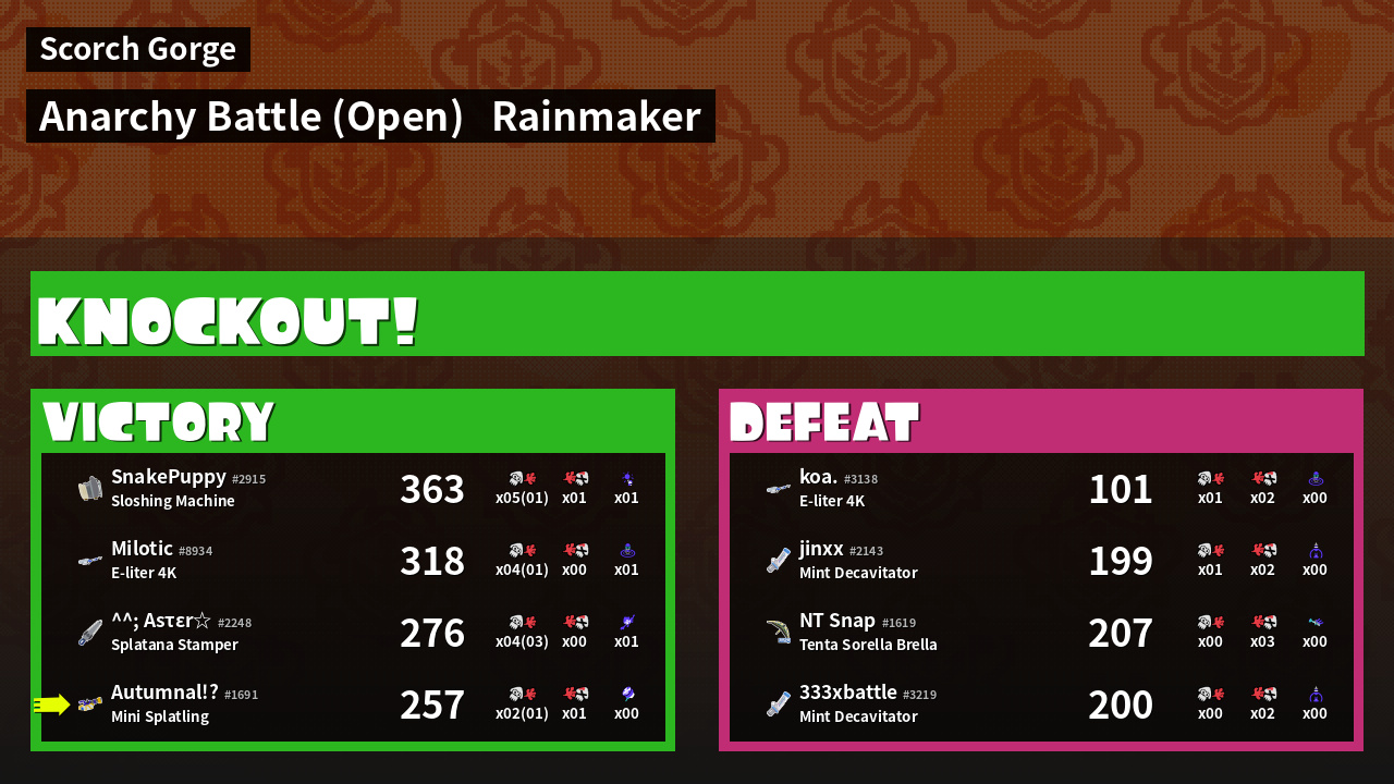 | Mode | Rainmaker - Anarchy Battle (Open) | ||