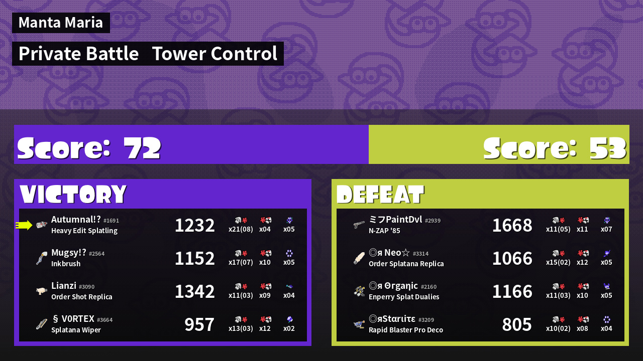 Kills / Deaths | 13 + 8 / 4 > Kill Ratio: 3.25 | ||