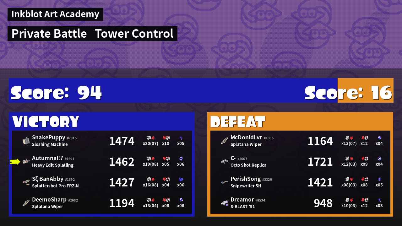 Name | Weapon | Inked | ![]() |