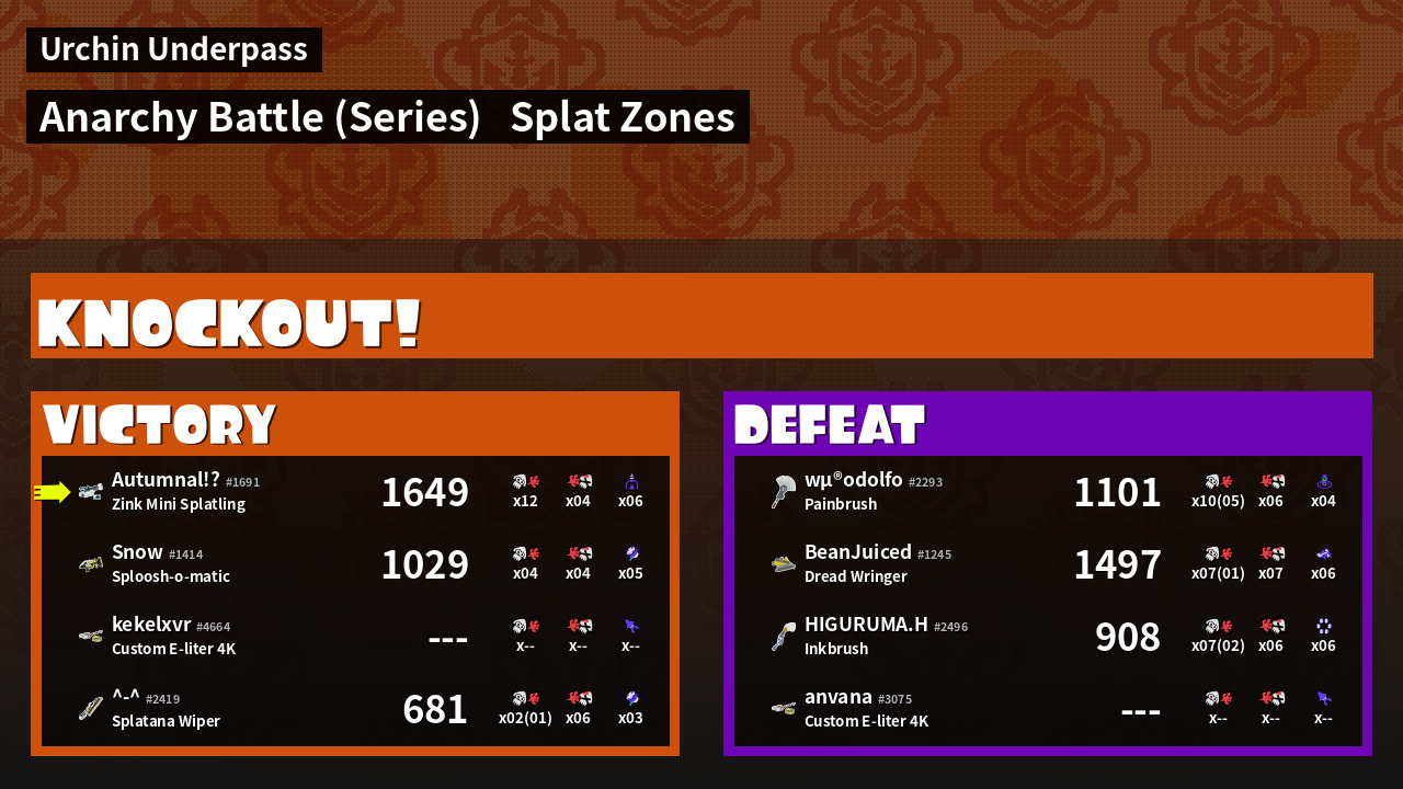 | Mode | Splat Zones - Anarchy Battle (Series) | ||