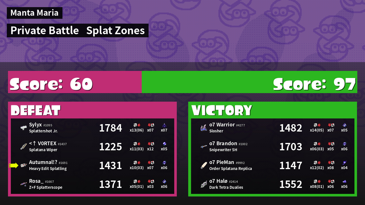 Kills / Deaths | 7 + 3 / 7 = Kill Ratio: 1.00 | ||