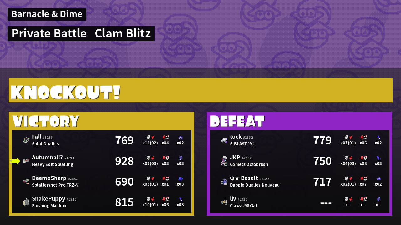 | Medals | #1 Clam Carrier #1 Turf Inker #1 Splat Assister | ||