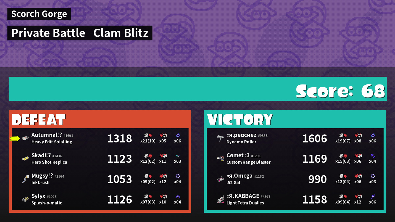 Kills / Deaths | 11 + 10 / 5 > Kill Ratio: 2.20 | ||