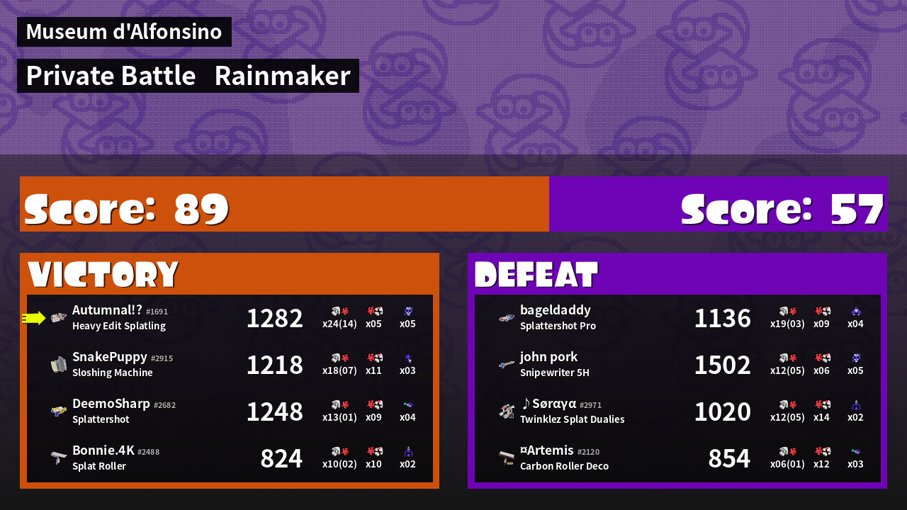 | Medals | #1 Overall Splatter #1 Score Booster Record-Score Setter | ||