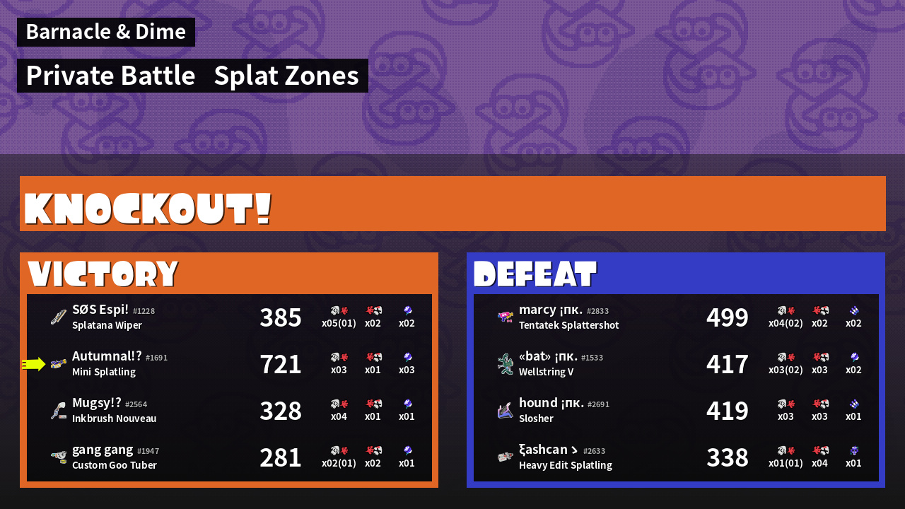 | Mode | Splat Zones - Private Battle | ||
