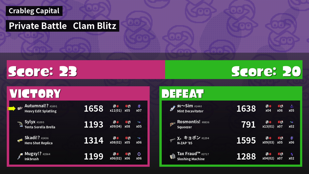 Kills / Deaths | 10 + 1 / 5 > Kill Ratio: 2.00 | ||
