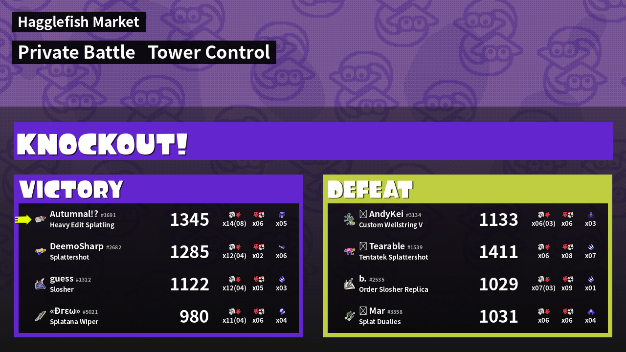 Kills / Deaths | 6 + 8 / 6 = Kill Ratio: 1.00 | ||
