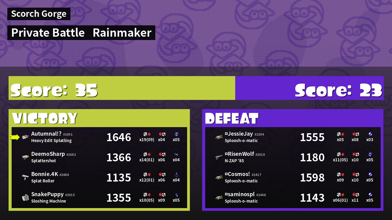 | Medals | #1 Overall Splatter #1 Turf Inker #1 Popular Target | ||