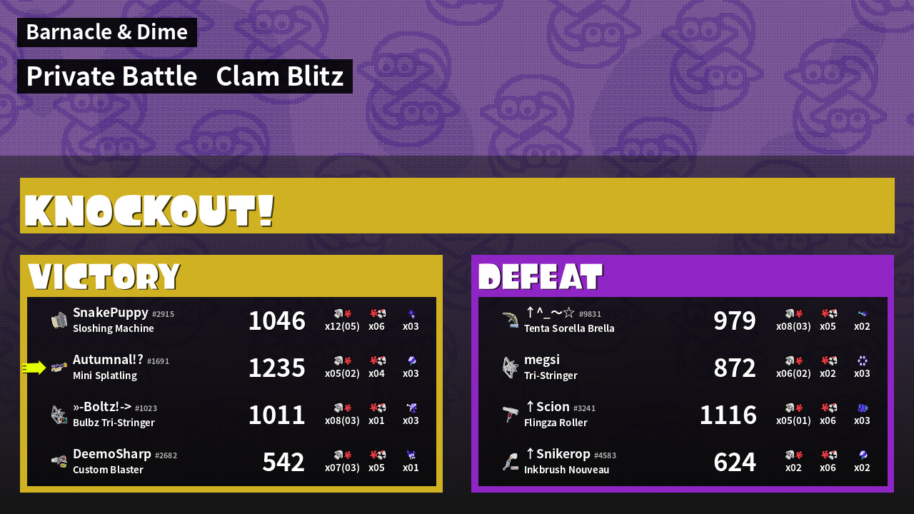 | Mode | Clam Blitz - Private Battle | ||