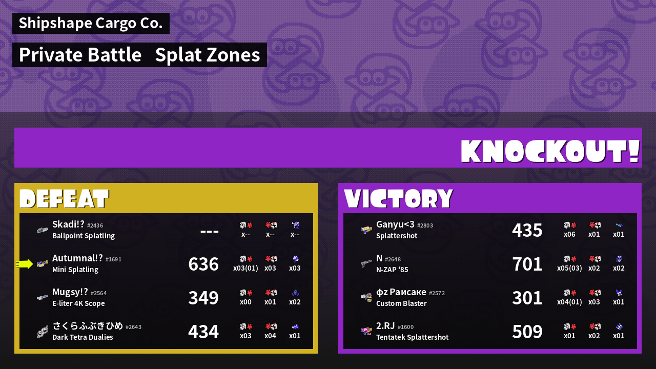 Name | Weapon | Inked | ![]() |