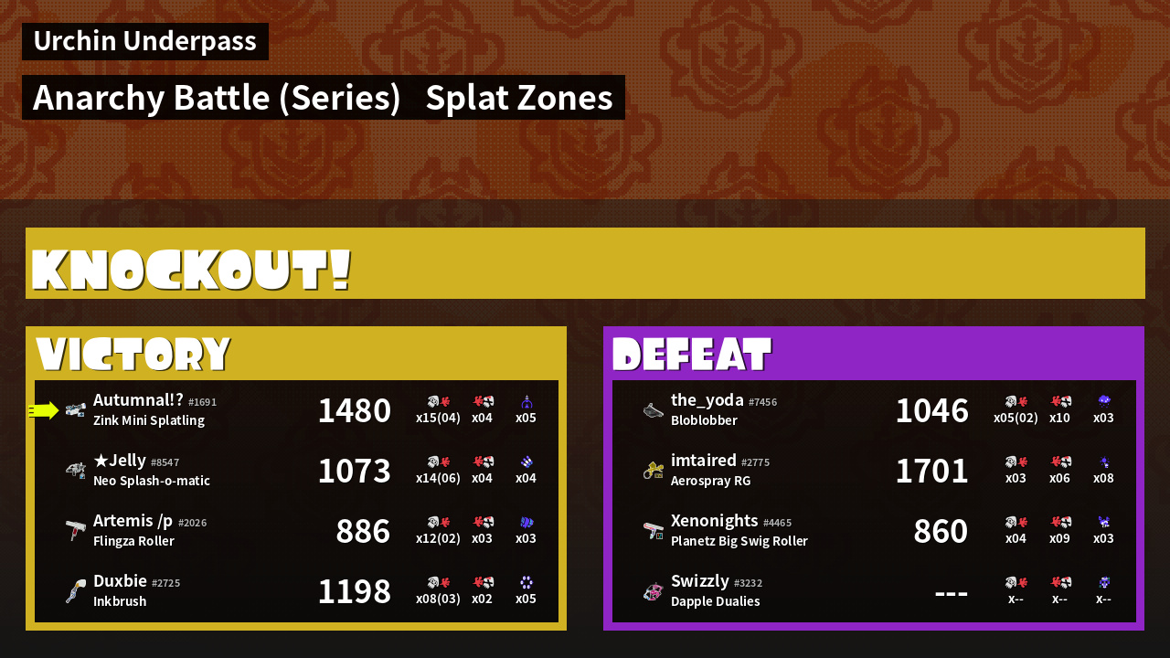 | Medals | #1 Overall Splatter #1 Splat Zone Guard #1 Turf Inker | ||