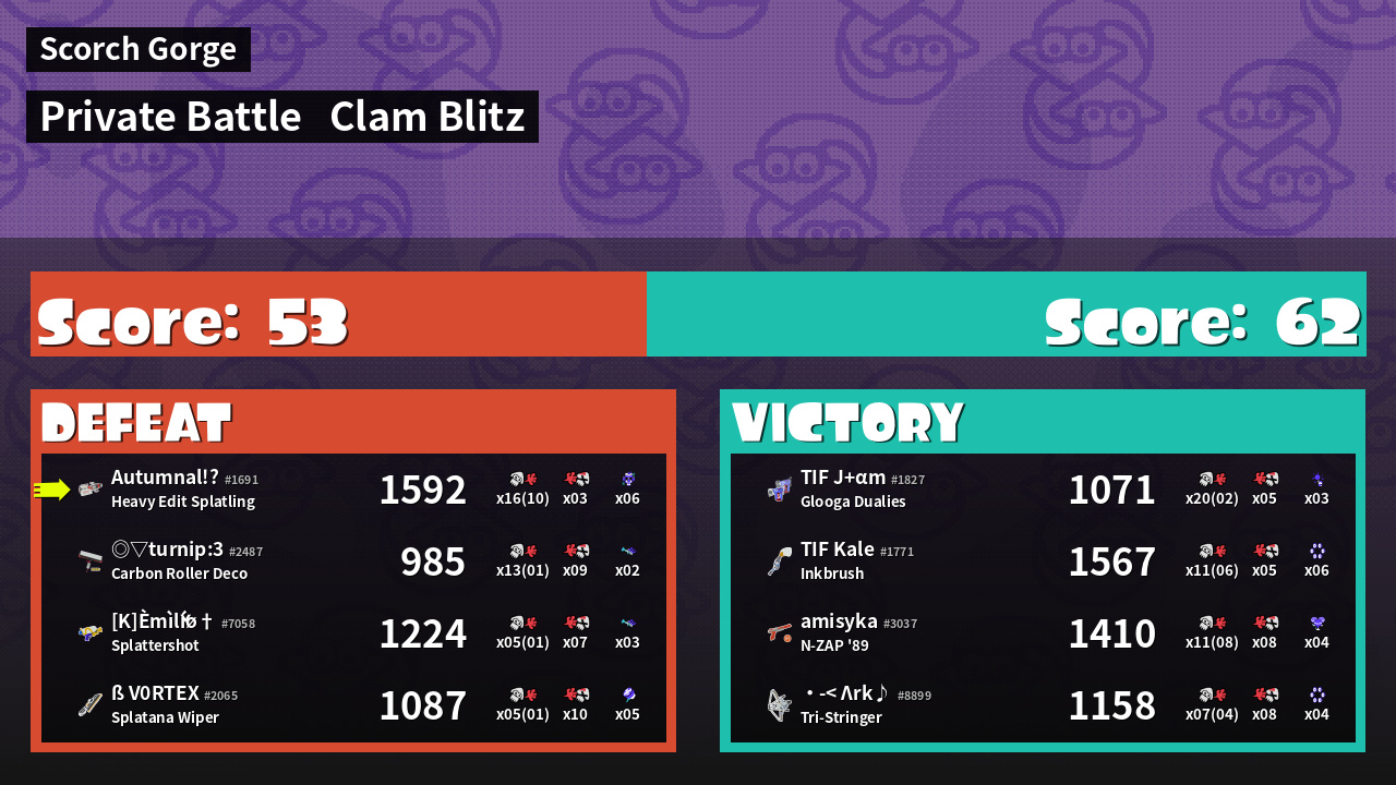 Kills / Deaths | 6 + 10 / 3 > Kill Ratio: 2.00 | ||