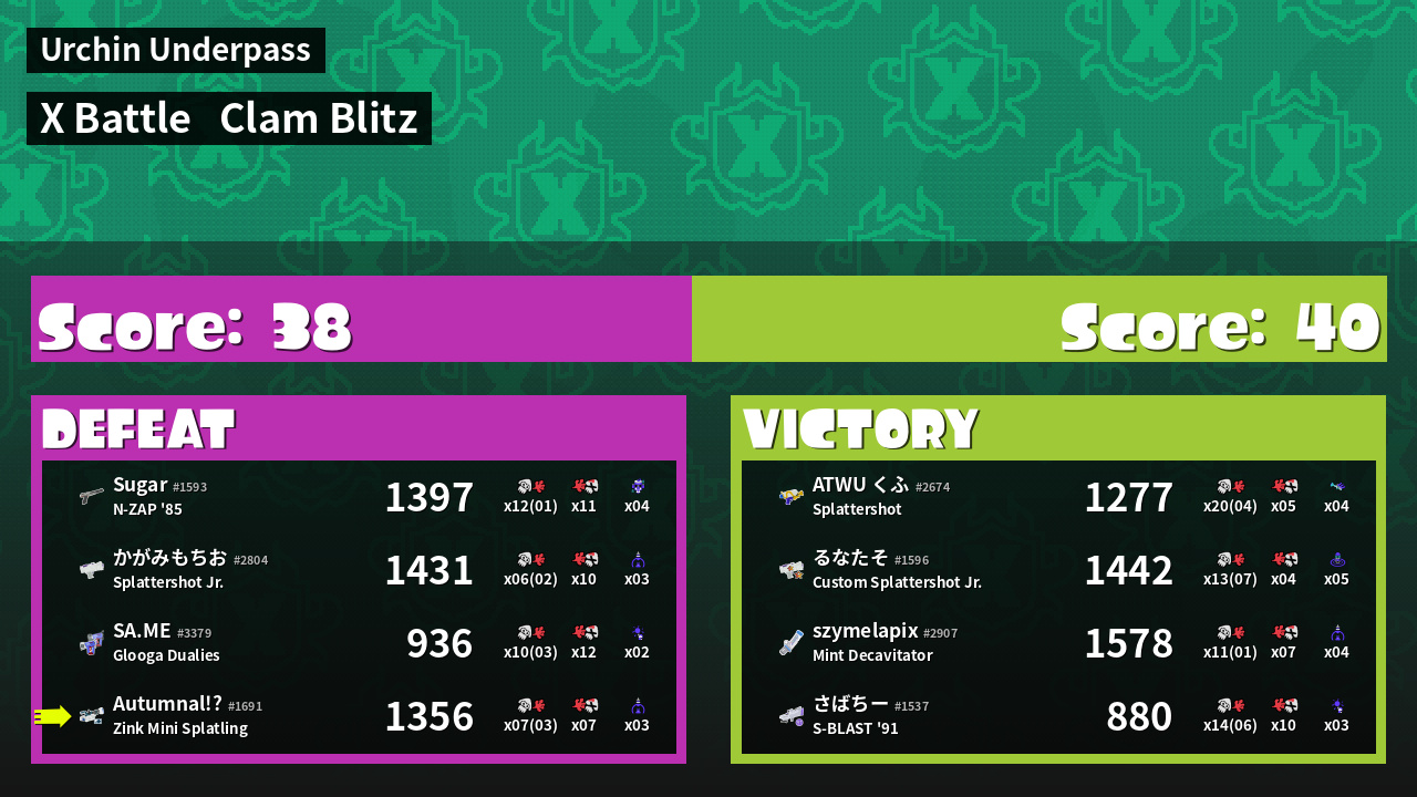 | Mode | Clam Blitz - X Battle | ||