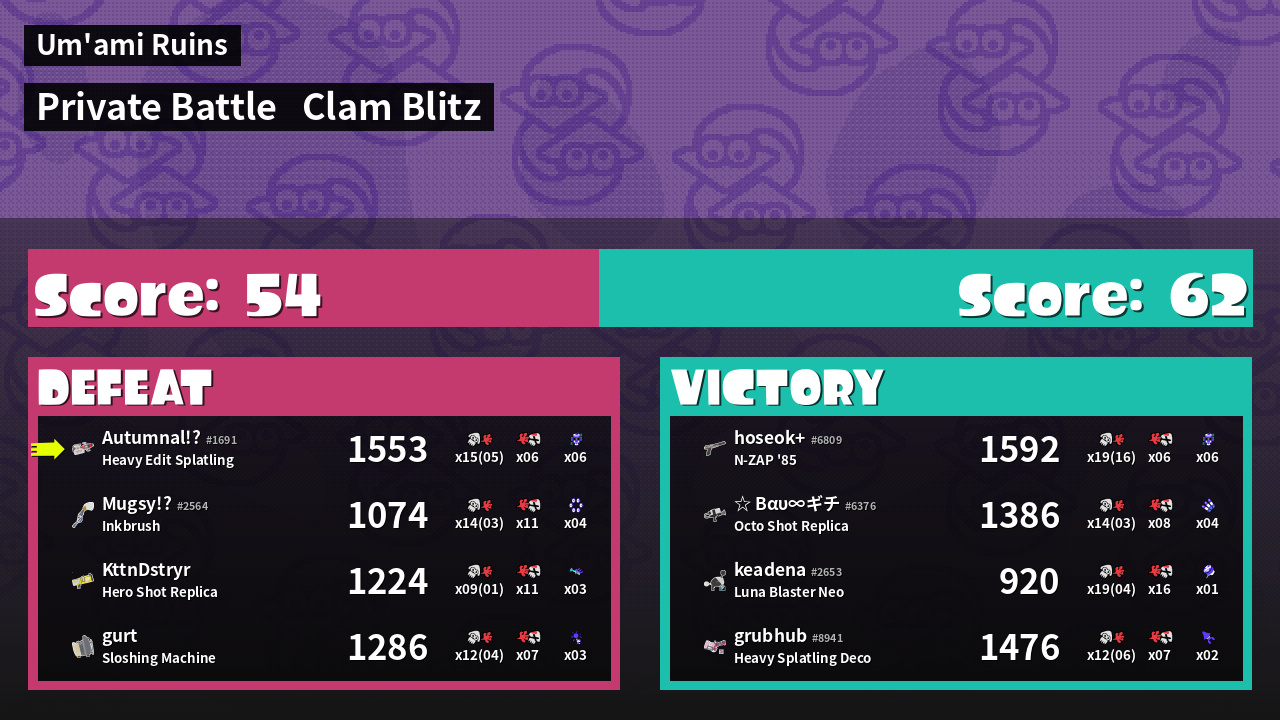 Kills / Deaths | 10 + 5 / 6 > Kill Ratio: 1.67 | ||