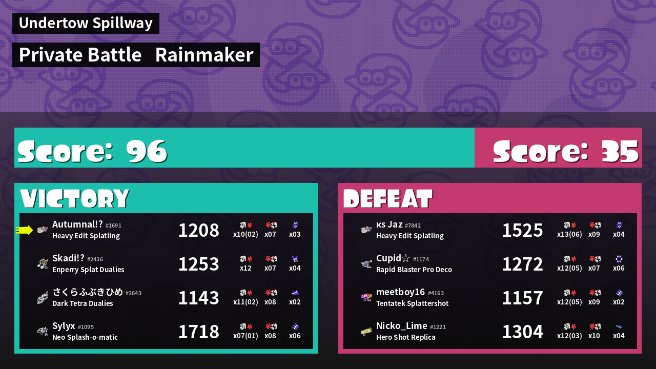 Kills / Deaths | 8 + 2 / 7 > Kill Ratio: 1.14 | ||