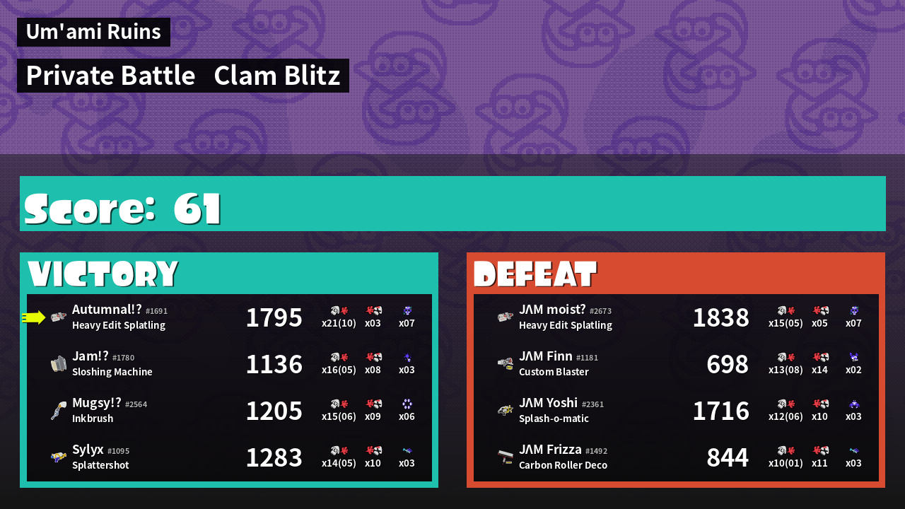 Kills / Deaths | 11 + 10 / 3 > Kill Ratio: 3.67 | ||