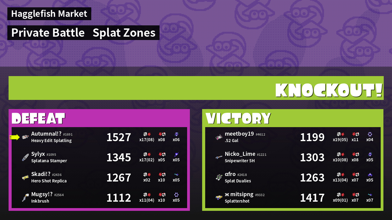 Kills / Deaths | 9 + 8 / 8 > Kill Ratio: 1.12 | ||
