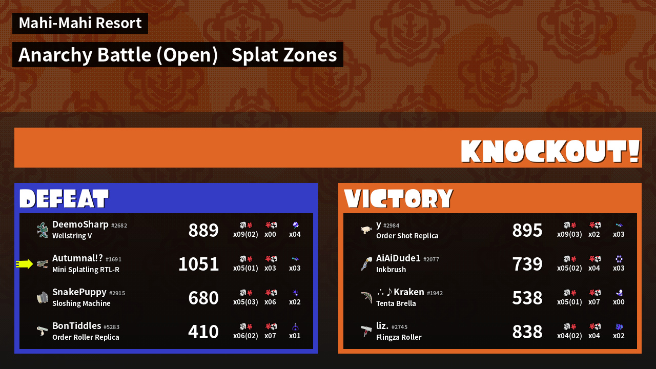 | Mode | Splat Zones - Anarchy Battle (Open) | ||