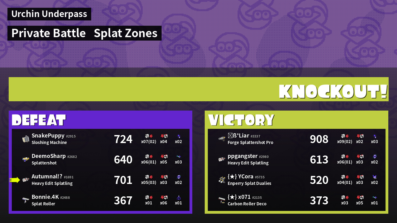 | Medals | #1 Splat Assister #1 Tacticooler User #2 Splat Zone Inker | ||