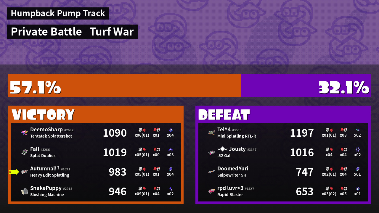 | Mode | Turf War - Private Battle | ||