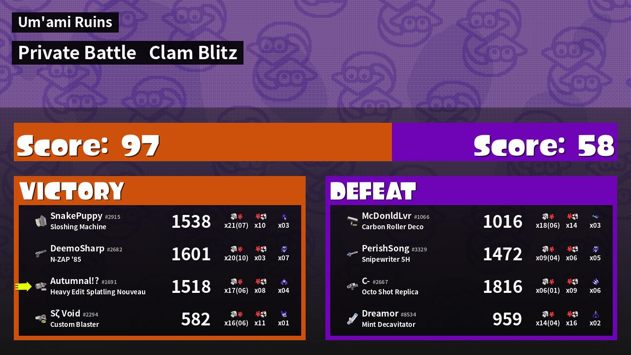 Kills / Deaths | 11 + 6 / 8 > Kill Ratio: 1.38 | ||