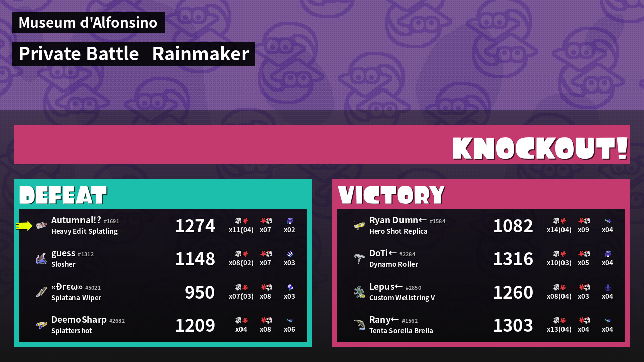 Kills / Deaths | 7 + 4 / 7 = Kill Ratio: 1.00 | ||