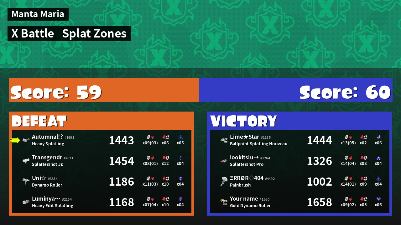 Name | Weapon | X | Inked | ![]() |