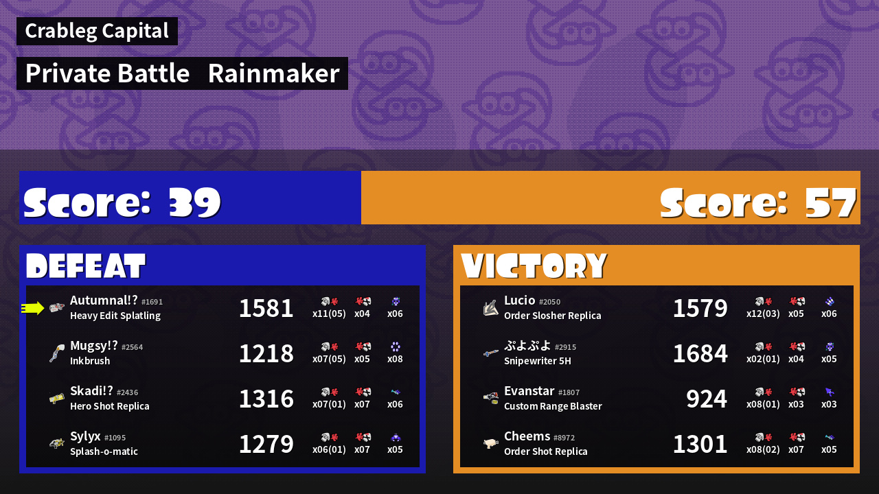 Name | Weapon | Inked | ![]() |