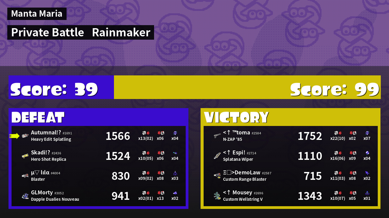 Kills / Deaths | 11 + 2 / 6 > Kill Ratio: 1.83 | ||