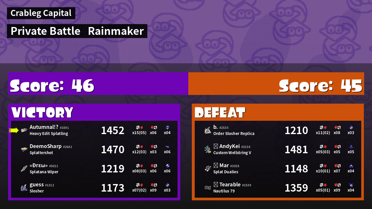 Kills / Deaths | 10 + 5 / 6 > Kill Ratio: 1.67 | ||