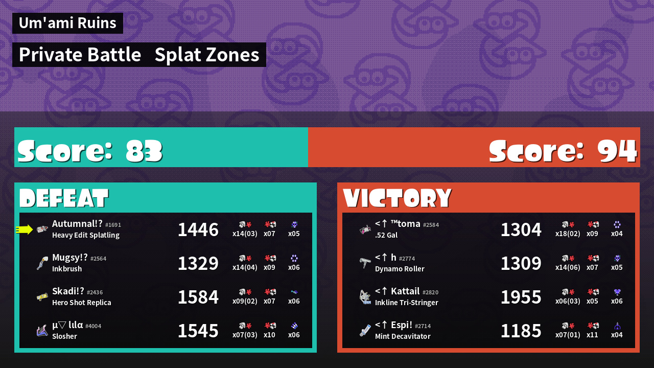 Kills / Deaths | 11 + 3 / 7 > Kill Ratio: 1.57 | ||