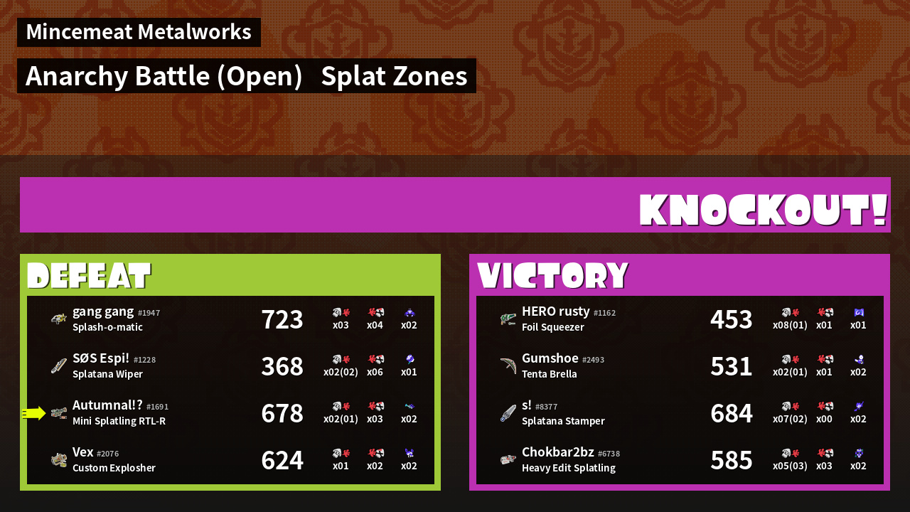 | Mode | Splat Zones - Anarchy Battle (Open) | ||