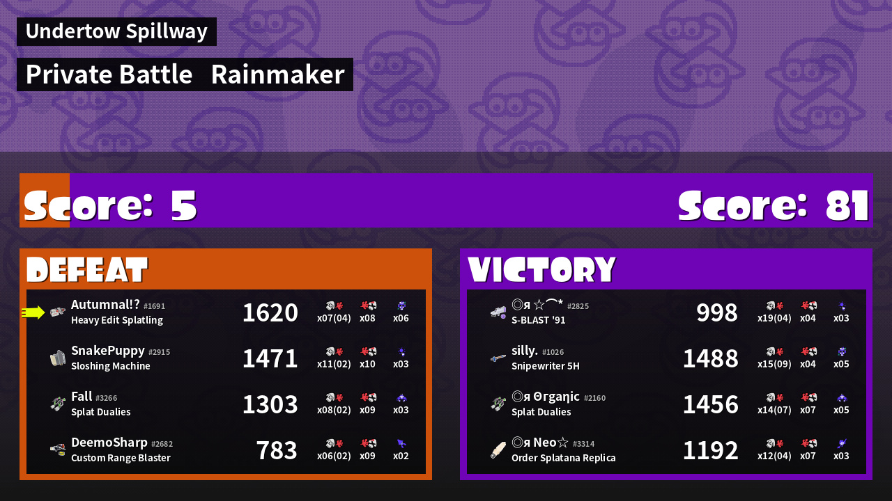 | Weapon | Heavy Edit Splatling ( Curling Bomb / Tacticooler) | ||