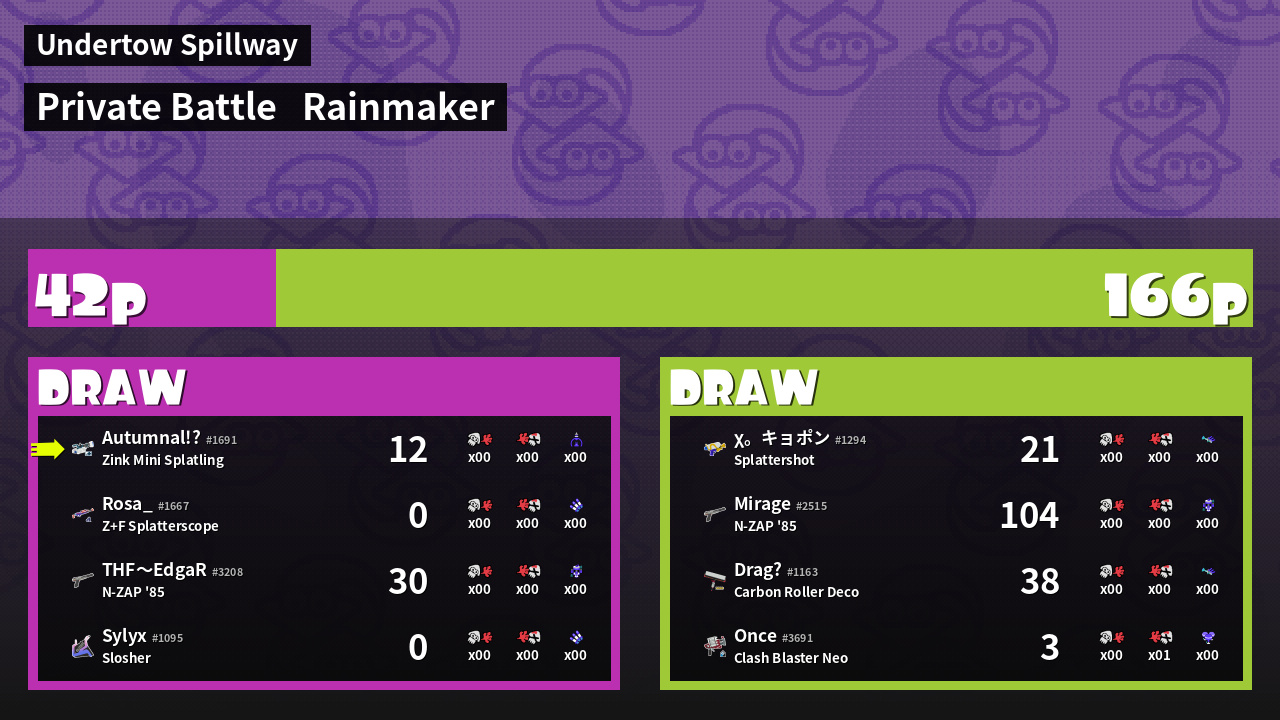 Kills / Deaths | 0 + 0 / 0 = Kill Ratio: 1.00 | ||