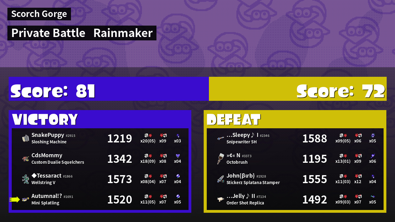 | Weapon | Mini Splatling ( Burst Bomb / Ultra Stamp) | ||