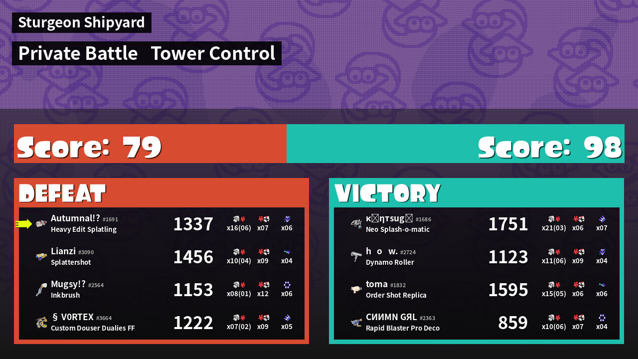 Name | Weapon | Inked | ![]() |