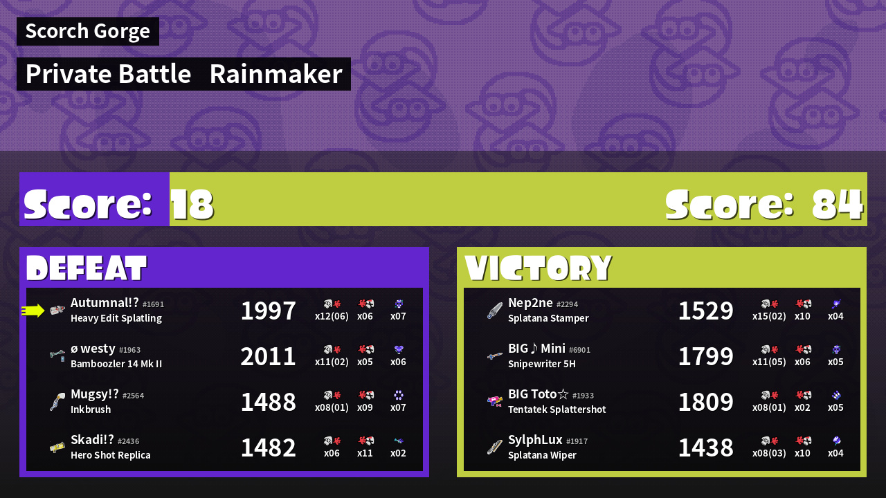 Kills / Deaths | 6 + 6 / 6 = Kill Ratio: 1.00 | ||