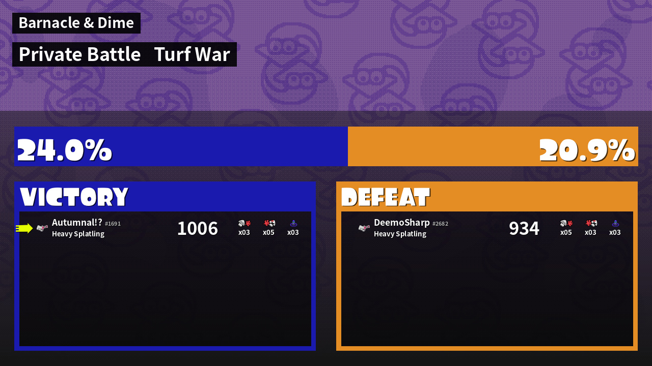 | Weapon | Heavy Splatling ( Sprinkler / Wave Breaker) | ||