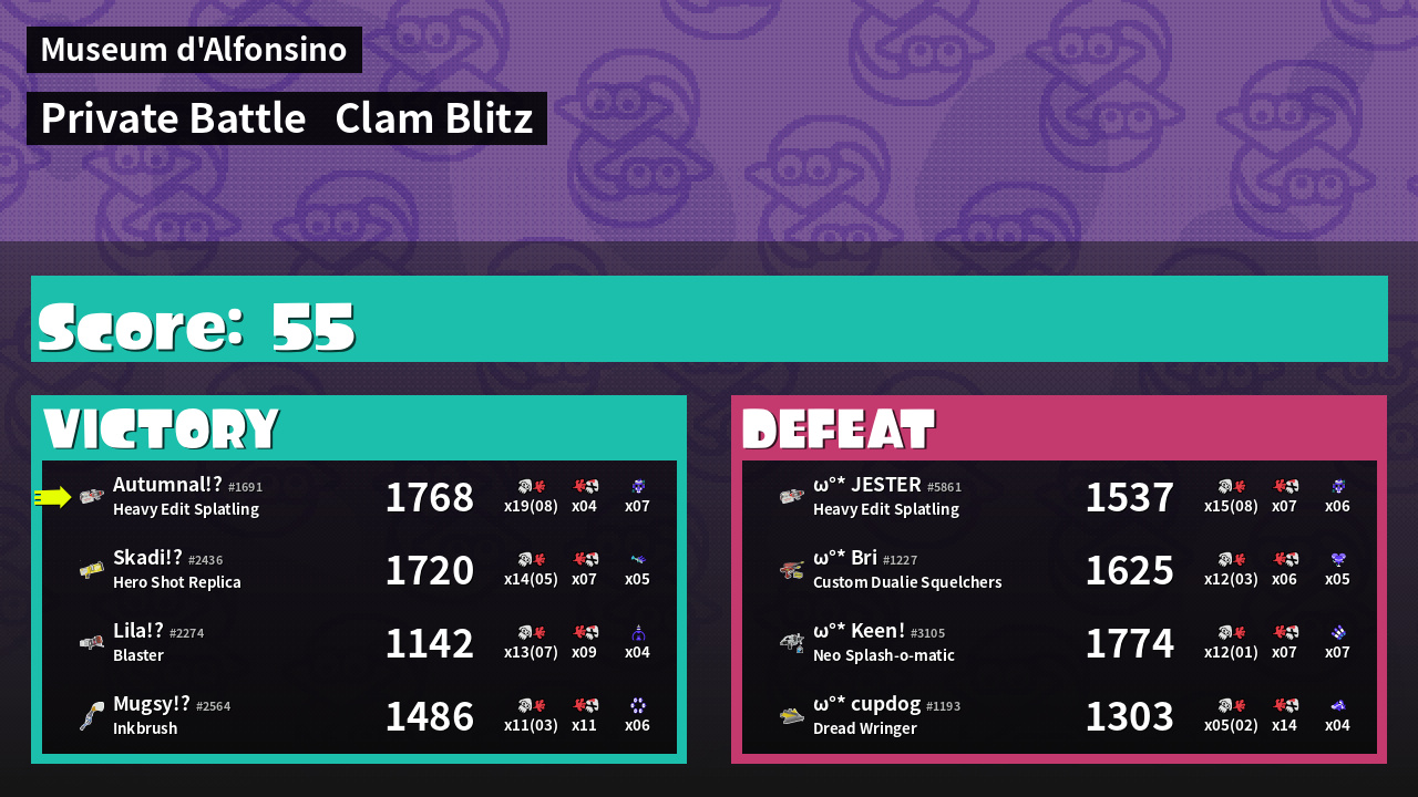 Kills / Deaths | 11 + 8 / 4 > Kill Ratio: 2.75 | ||