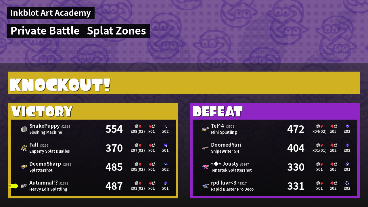 | Medals | #1 Tacticooler User #2 Splat Zone Guard #2 Turf Inker | ||