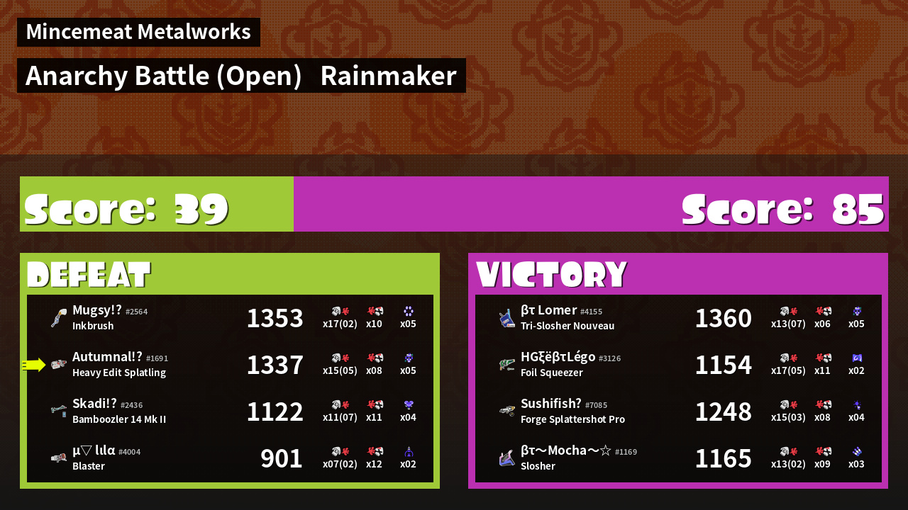 Results of AutumnalEquinox's Battle