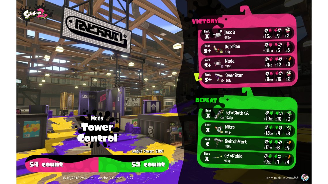 | SplatNet Battle # | 906 | |||||||||||||||||||||||||||||||||||||
