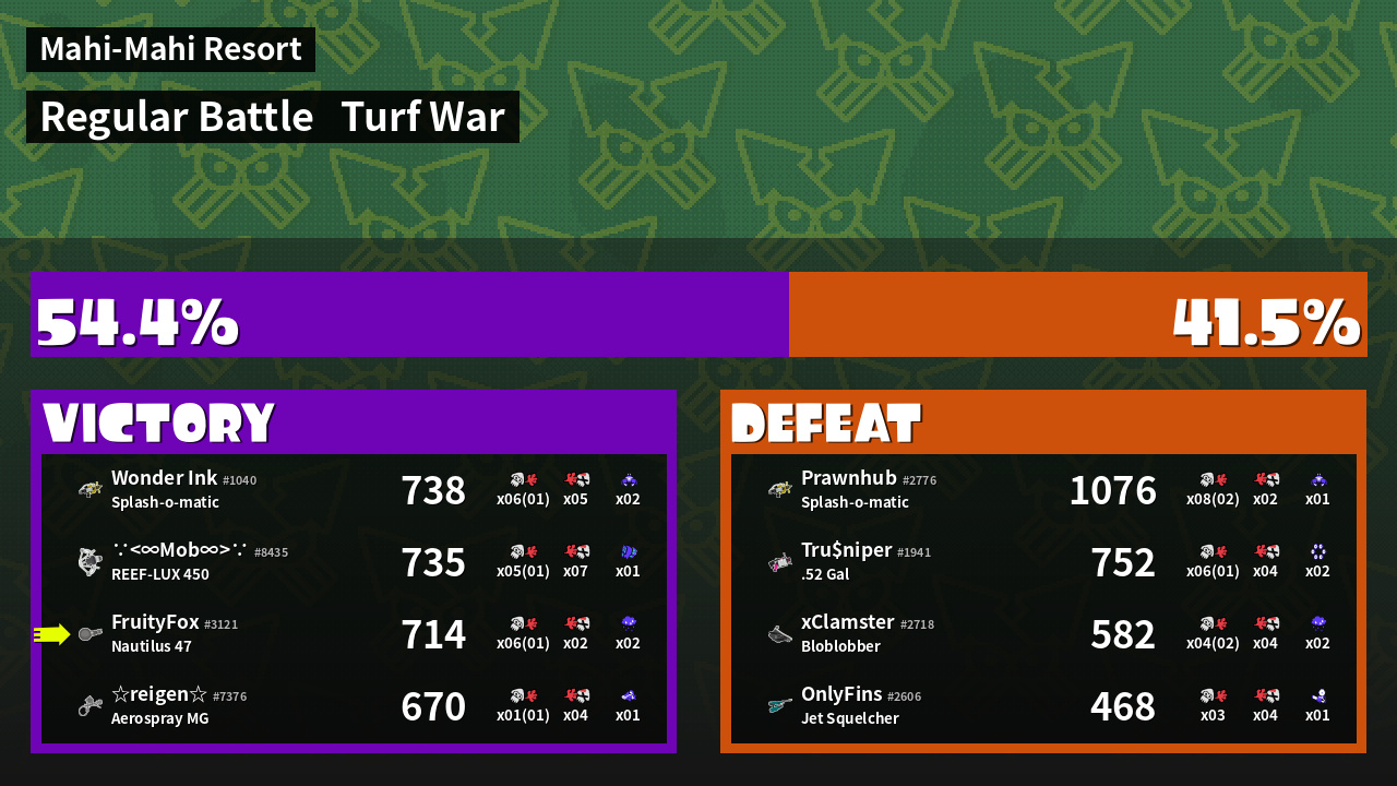 | Medals | #1 Overall Splatter #1 Popular Target #1 Enemy-Base Inker | ||