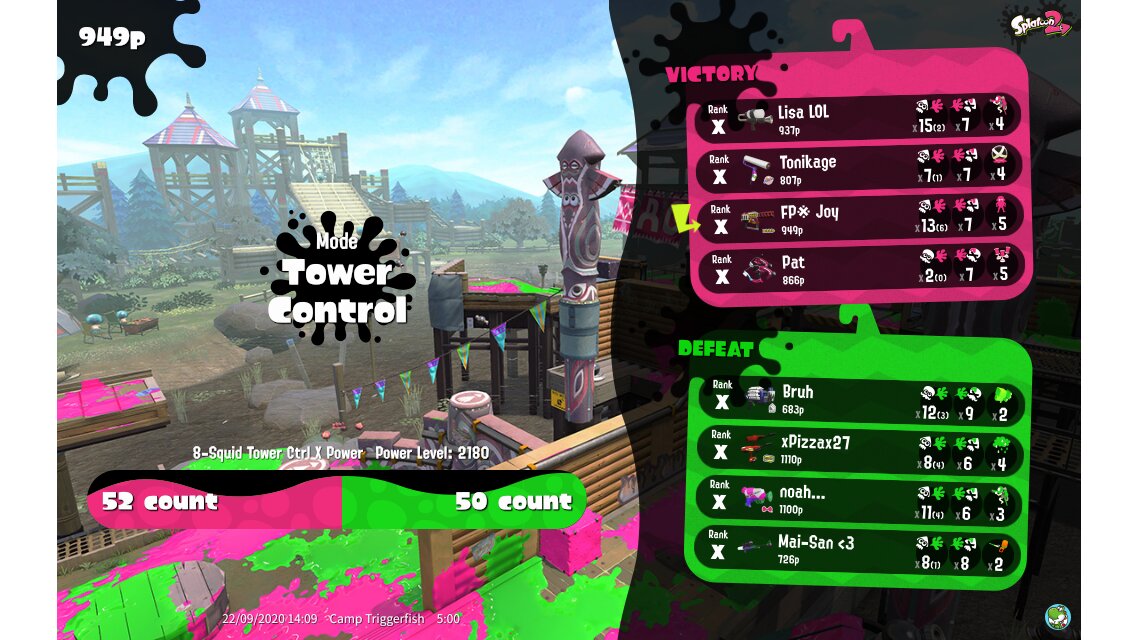 | Mode | Tower Control - Ranked Battle | |||||||||||||||||||||||||||||||||||||