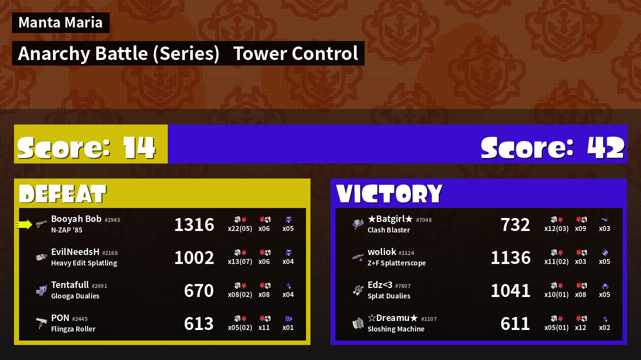 | Mode | Tower Control - Anarchy Battle (Series) | ||