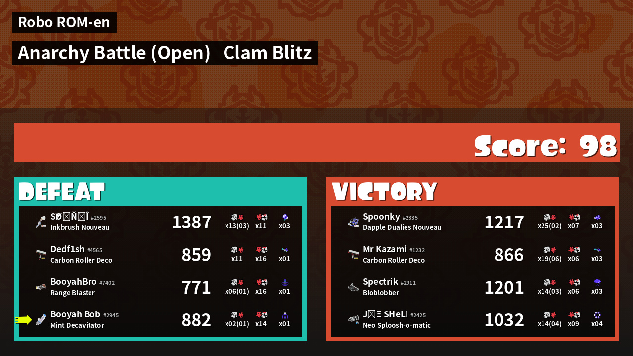 | Mode | Clam Blitz - Anarchy Battle (Open) | ||