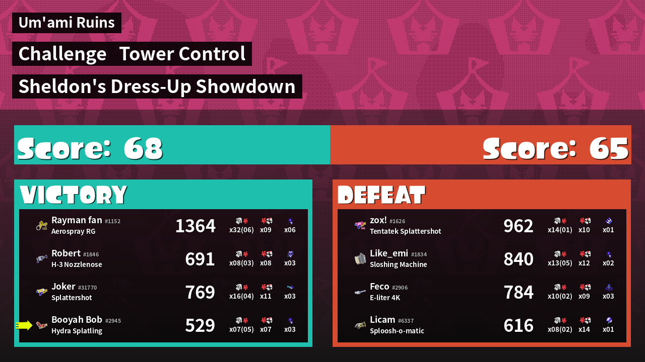 | Medals | #1 Checkpoint Breaker #2 Super Jump Spot #2 Splat Assister | ||